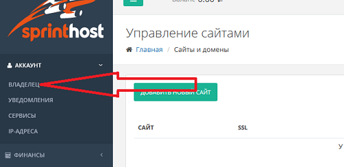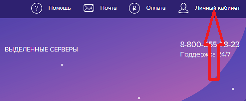 1). Заходим на сайт sprinthost и вверху справа переходим в "личный кабинет".