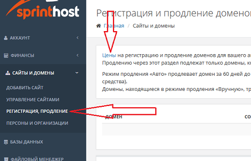 12). Теперь переходим в пункт "регистрация, продление" в разделе "сайты и домены" и нажимаем на "цены".