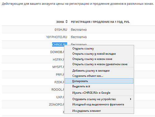 14). Выберите домен, который нравится Вам больше и скопируйте его.