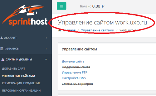 9). Далее нужно в левой колонке хостинга выбрать пункт "сайты и домены", а внутри него "управление сайтами".