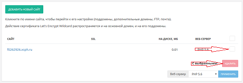 10). Напротив домена, который выделил Вам sprinthost автоматически, нужно поставить галочку и нажать "удалить"