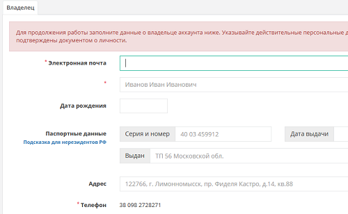 4). В открывшемся окне нужно предоставить личную информацию. Лучше заполнить все поля (не только со звездочкой), все равно будет нужно отправлять копии личных документов.