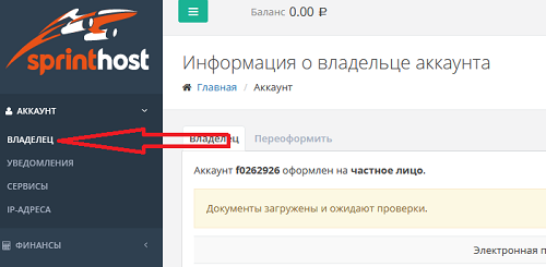 Сразу хочу уточнить, что при замене доменного имени нужно будет загрузить копию документа удоставеряющего личность (паспорт), проверка занимает около 24 часов (можно ускорить процесс, обратившись в службу поддержки). Так как же поменять странное доменное имя, которое дает sprinthost при регистрации на бесплатном домене? На самом деле это довольно просто. Следуйте инструкциям ниже и у Вас обязательно получиться получить более привлекательный адресс для Вашего сайта абсолютно бесплатно! Ну а начнем с заполнения информации о владельце аккаунта.