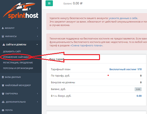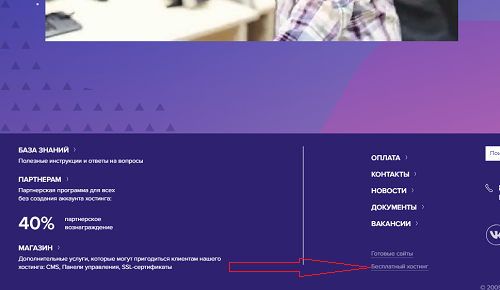 1). Заходим на сайт sprinthost , прокручиваем страницу в самый низ и жмем "бесплатный хостинг".